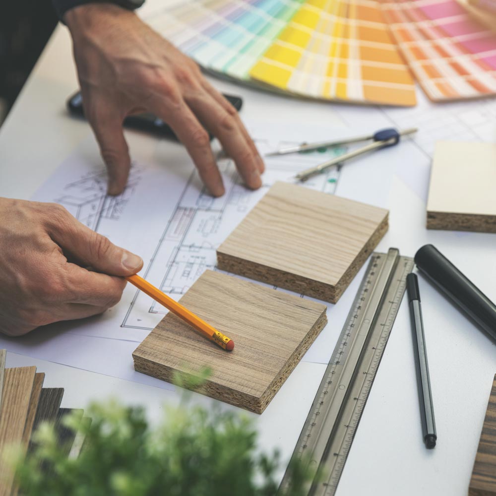 Baldus deriname prie esamo ar būsimo interjero, parenkame medžiagas ir spalvas.